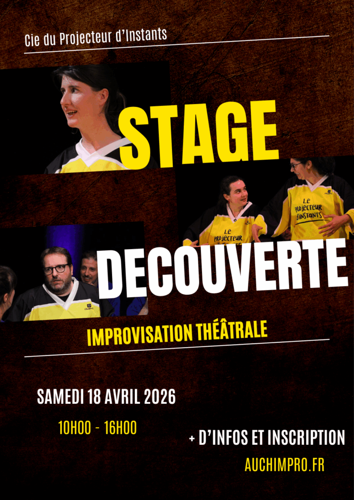 Ce stage est un atelier ponctuel où l’on découvre et on fait ses premiers pas dans l’improvisation théâtrale par des jeux et des expérimentations. On ose le saut dans l’inconnu et on touche du doigt les rudiments du jeu théâtrale improvisé.